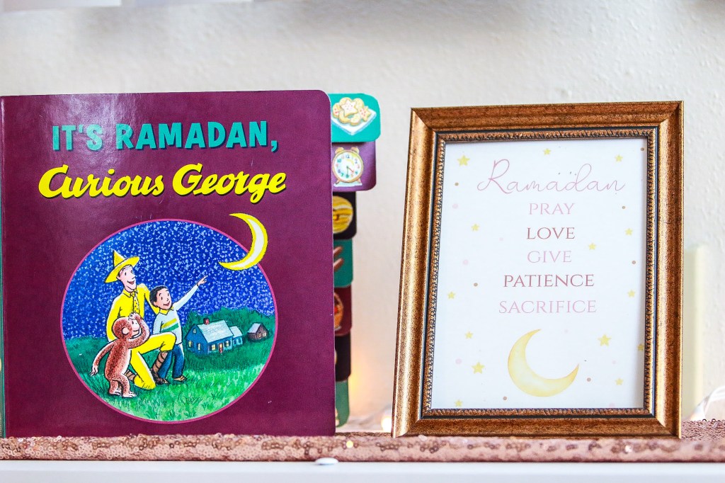 My daughter loves lights so we purchased a few from Target and added lantern, moon, and star cutouts. She asks me if she can turn them on every night. This also helped her learn that the moon is an important part of Ramadan. Now when she sees it outside, she points and says “look mama, it’s Ramadan”